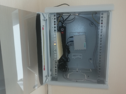 Сетевое оборудование смонтировано в металлическом ящике ШРН-8.255-10.