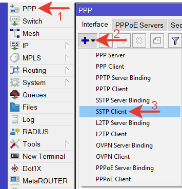 Переходим в меню PPP, выбираем SSTP Client.