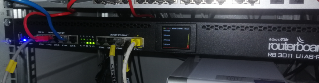 Роутер-сервер расположен в РШ серверной главного здания. В первый порт подключен патч-корд к оптическому конвертору. Во второй порт подключен патч-корд к ЛВС1.