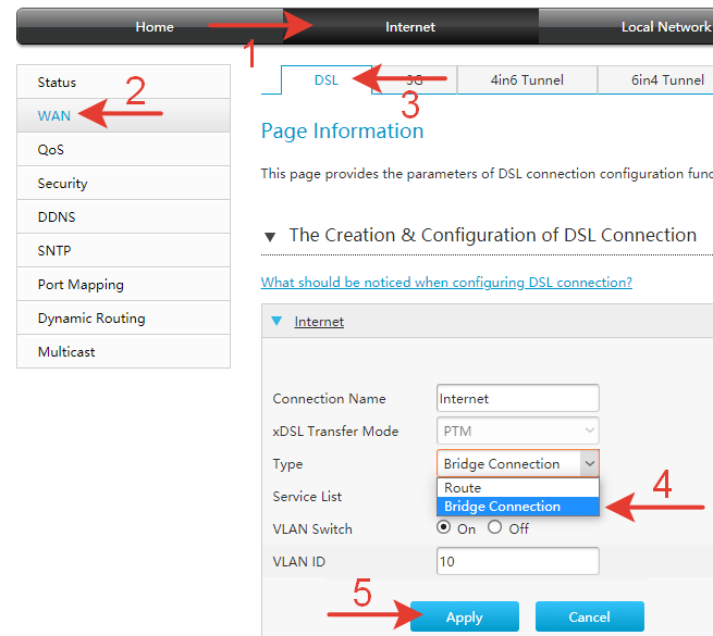 Для продолжения настроек VPN туннеля, необходимо перевести модем в режим работы Bridge.