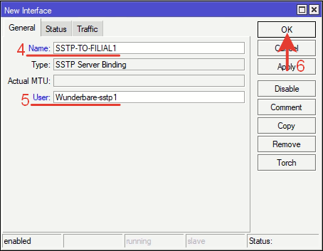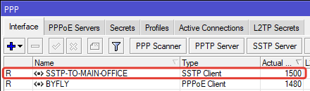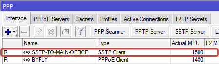 | /interface sstp—server add name=SSTP—TO—FILIAL1 user=Wunderbare—sstp1 |