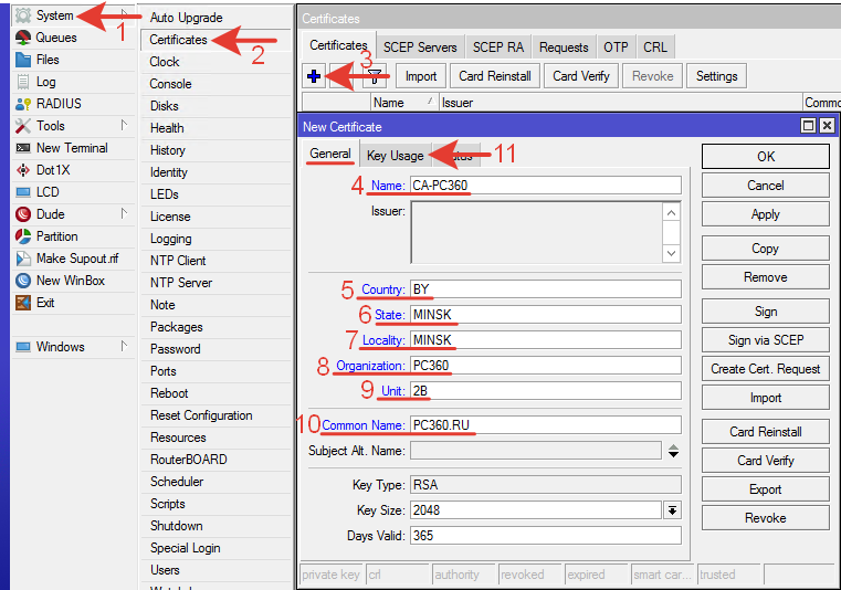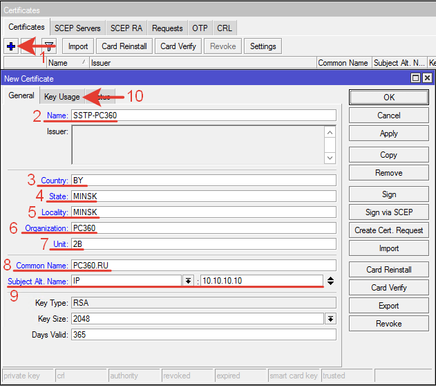 Days Valid: 365 – срок действие сертификата в днях.