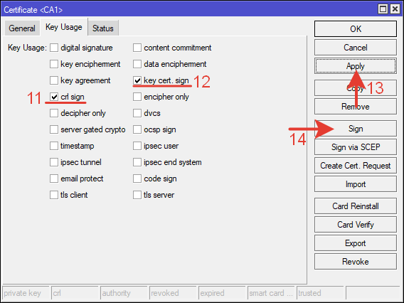ctr sign — возможность подписывать другие сертификаты.