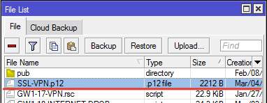 Сертификат появится среди файлов в роутере.