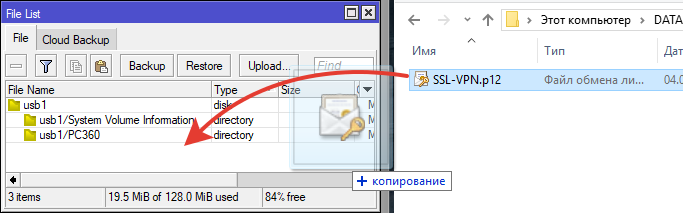 Переносим сертификат на компьютер (перетягиваем мышью), на флэшку и загружаем в клиентский роутер.