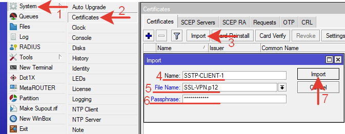 Переносим сертификат в роутер клиента.