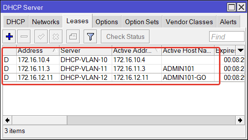 Проверяем DHCP список в роутере GW1.