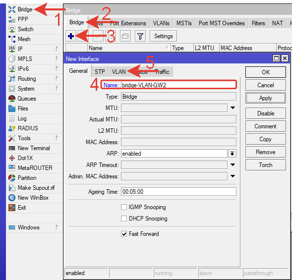 Name: bridge-VLAN-GW2 – любое понятное имя латиницей.