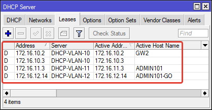 После этих действий хостам в портах GW2 ether2, ether3, ether4 начнут раздаваться IP-адреса из VLAN.