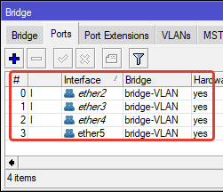 Untagged: ether4 – не тегированный порт.