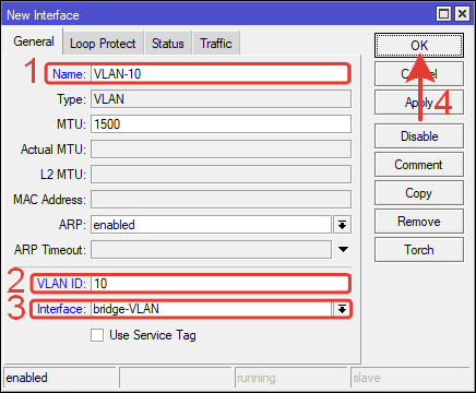 Interface: bridge-VLAN – интерфейс для VLAN-10.