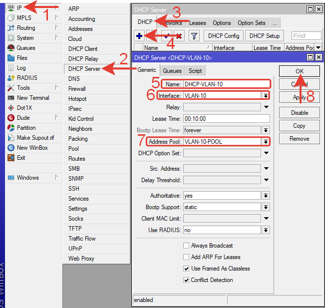 Interface: VLAN-10 – интерфейс на котором будет работать DHCP.