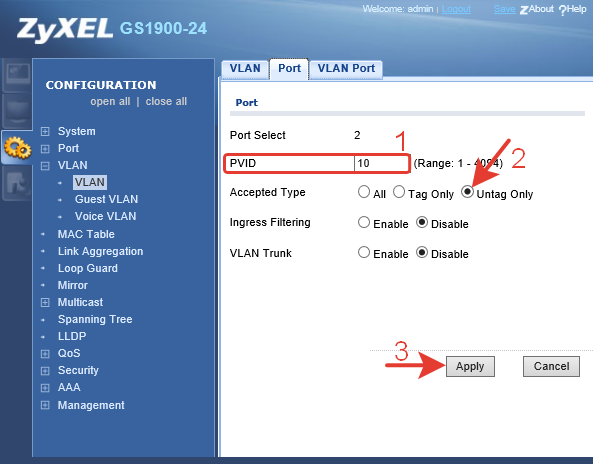 Информация о настройке VLAN коммутатора GS1900 взята с офф. сайта ZyXEL.