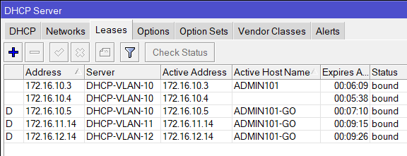 Так же в настройке можно изменить время привязки (Lease Time), но лучше это делать когда все пользователи получат запланированные адреса. В нашей рабочей сети время привязки от 8 до 12 часов по продолжительности рабочего дня. Для гостевой сети время привязки 1-2 часа.