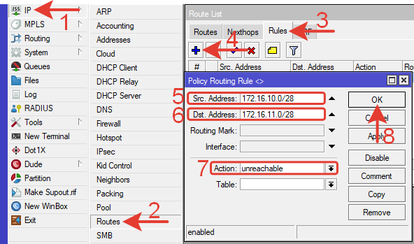 IP >> Routes >>Rules >> + (создаем новое правило).