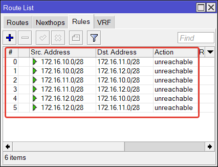 В итоге для 3х сетей получается шесть правил. Располагаем правила вверху списка.