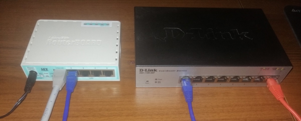 После нажатия кнопки «Apply» в порт №1 коммутатора нужно подключить патч-корд от порта роутера с настроенным VLAN – ether2 или ether3.