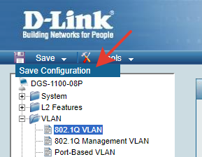 Настройка VLAN в коммутаторе DGS-1100-08P.