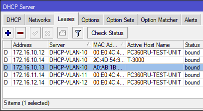 Подключаем оборудование в разные порты коммутатора и проверяем, какие IP-адреса раздаются.