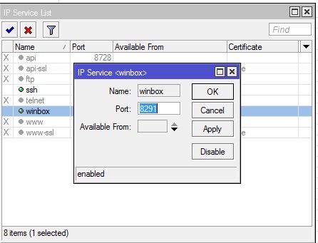ip service set winbox port=8291