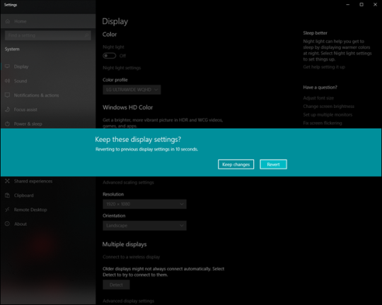 В тот момент, когда вы нажмете одну из опций, ваш дисплей будет настроен в соответствии с выбранным разрешением. Если все выглядит так же хорошо, как и должно, выберите «Сохранить изменения». Если разрешение испорчено, нажмите «Вернуть», чтобы вернуться к предыдущему разрешению.