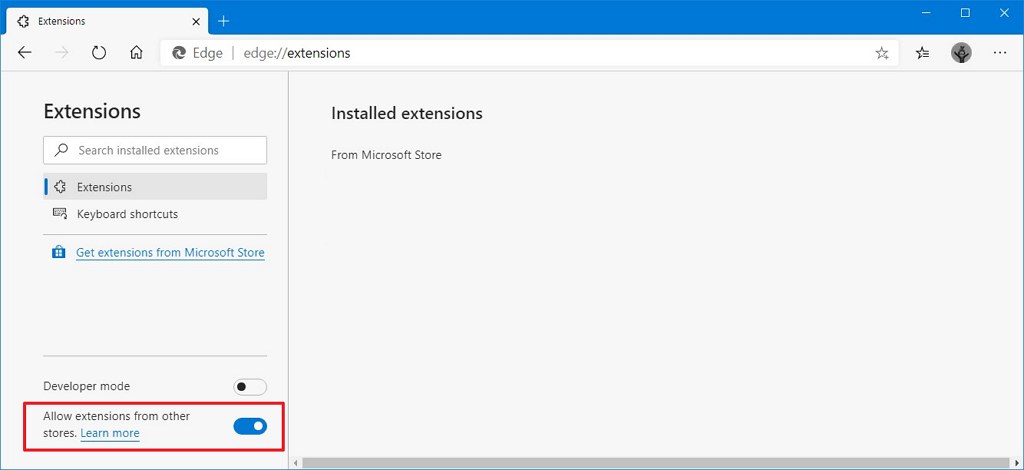 Несмотря на то, что в Edge есть поддержка расширений из других магазинов, например из Интернет-магазина Chrome, необходимо включить эту функцию, прежде чем устанавливать расширения. Вот как это сделать: