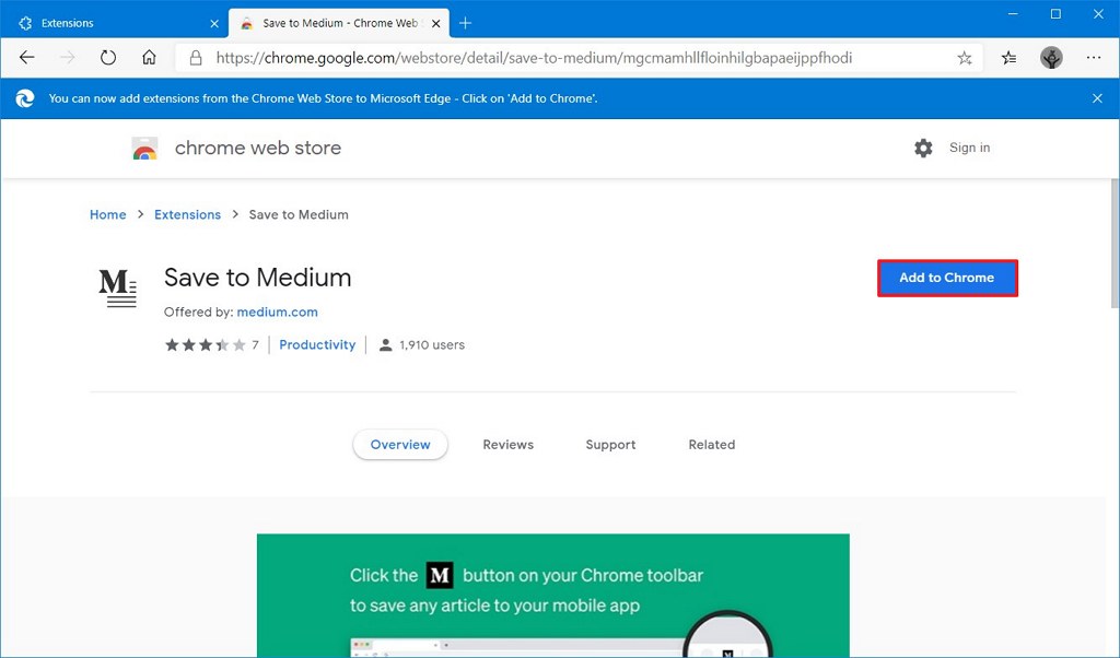 Чтобы установить расширение из Интернет-магазина Chrome в Microsoft Edge, выполните следующие действия.