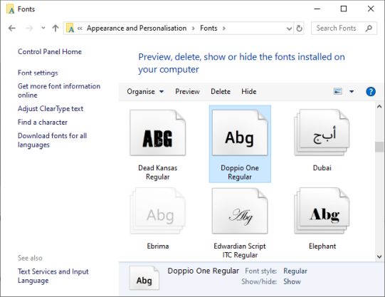 Шаг (3): В окне «Шрифты» найдите другой шрифт и решите, какой шрифт вы хотите использовать в качестве шрифта по умолчанию. И как только вы найдете подходящий шрифт, просто запишите точное название шрифта.