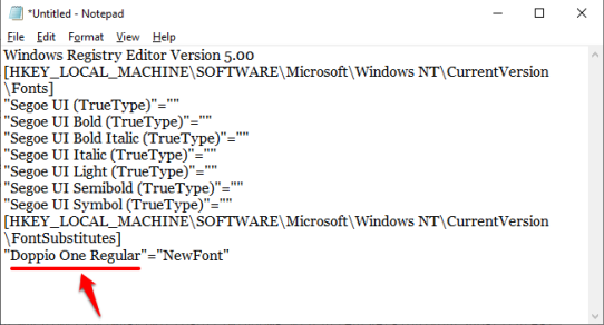 Шаг (5): И в последней строке кода реестра просто замените пользовательский интерфейс Segoe тем шрифтом, который вы хотите использовать.