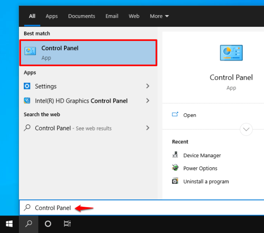 Шаг (1): Прежде всего, нажмите клавишу Windows, а затем найдите панель управления. Теперь из результатов поиска, нажмите на опцию панели управления.
