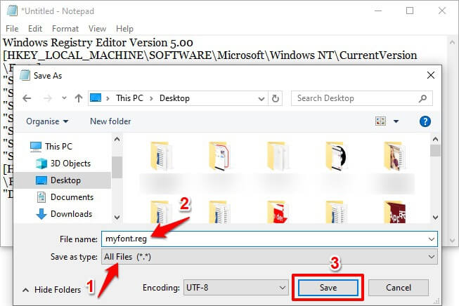 Шаг (7). Теперь выберите «Все файлы» в разделе «Тип файла» и сохраните файл с расширением .reg