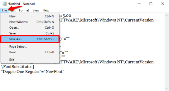 Шаг (6): После того, как вы заменили имя шрифта на желаемый, нажмите Файл и затем выберите опцию Сохранить как.