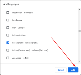 Затем выберите «Добавить», чтобы добавить язык. Ваш браузер должен загрузить языковой пакет и автоматически добавить его. Кроме того, если словарь доступен для того же самого, он также будет загружен.