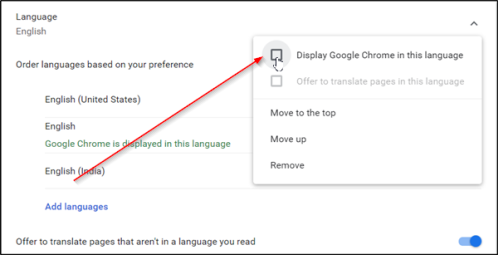 Наконец, установите флажок «Показать Chrome на этом языке» и перезапустите браузер, чтобы изменения вступили в силу.