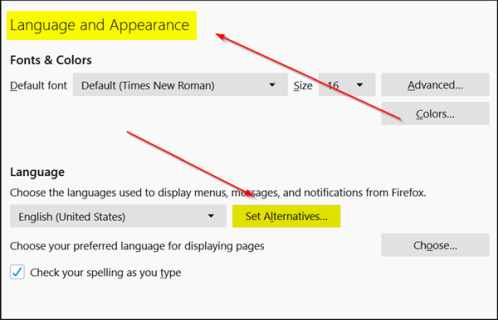 В отличие от Chrome, Firefox ранее поддерживал две опции для изменения языка интерфейса браузера: