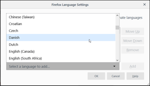 Как только порядок языков будет определен, будет установлен приоритет, в котором они должны использоваться. Вы можете изменить его в любое время, просто перемещая кнопки вверх или вниз. Прежде всего, предпочтение intl.locale.requested определяет приоритет языков в браузере Mozilla. Однако он виден или виден только в том случае, если в браузере установлено два или более языков.