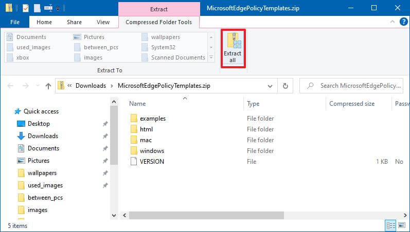 - Дважды щелкните, чтобы открыть файл MicrosoftEdgePolicyTemplates.zip.