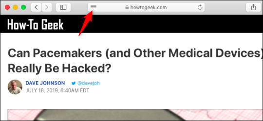 - Apple Safari: щелкните значок «Reader» в левой части адресной строки. Это похоже на несколько строк текста. Вы также можете нажать Cmd + Shift + R.