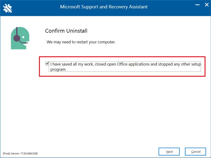 Удалите Microsoft 365 Office с помощью инструмента поддержки