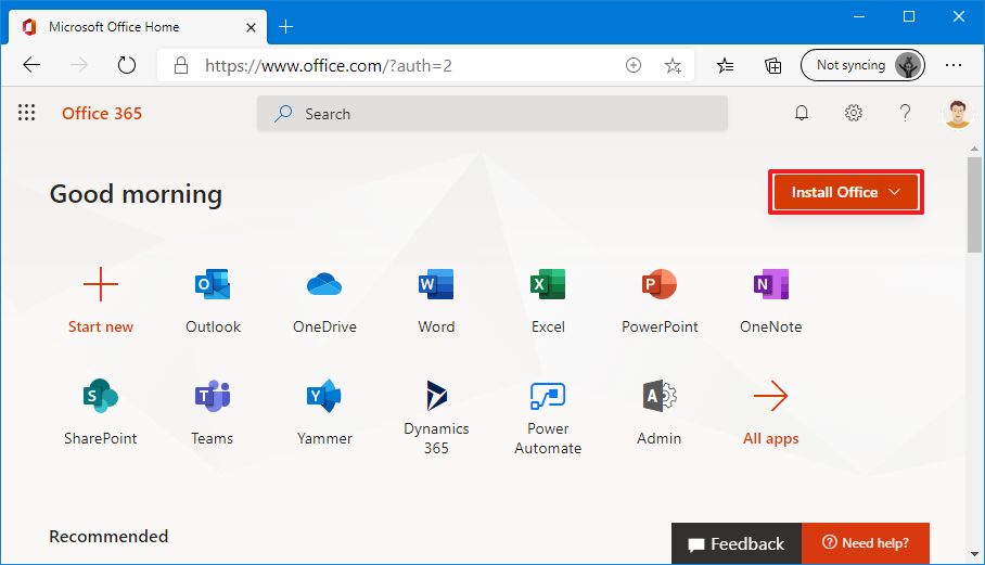 3. Нажмите кнопку «Установить Office» в правом верхнем углу, чтобы загрузить установщик.