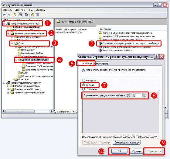 Выполните следующие шаги, чтобы выключить ограничение пропускной способности канала:
