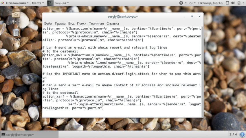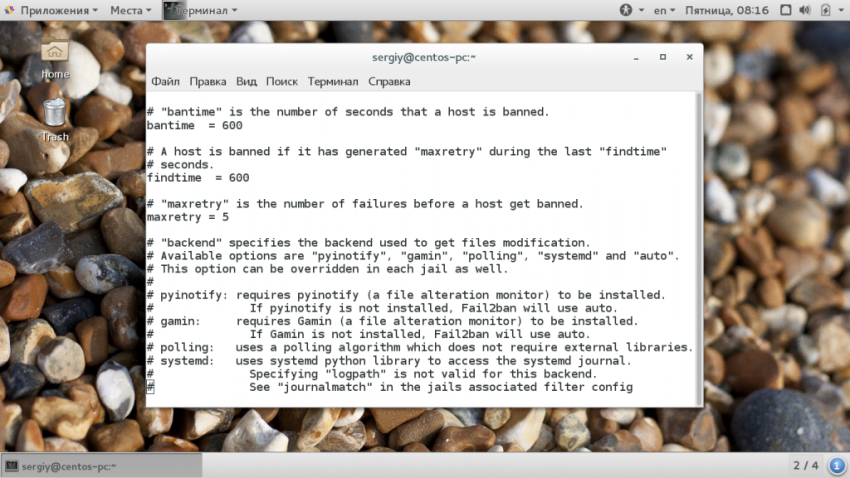 Теперь мы можем изменить здесь любые настройки, которые вам не нравятся в основном файле. Конфигурационный файл разделен на секции в зависимости от назначения опций. В секции [DEFAULT] находятся общие настройки, затем следуют отдельные секции для каждой блокировки отдельно. Опции по умолчанию и так неплохо работают, но в некоторых случаях дополнительная настройка может быть очень полезной.
