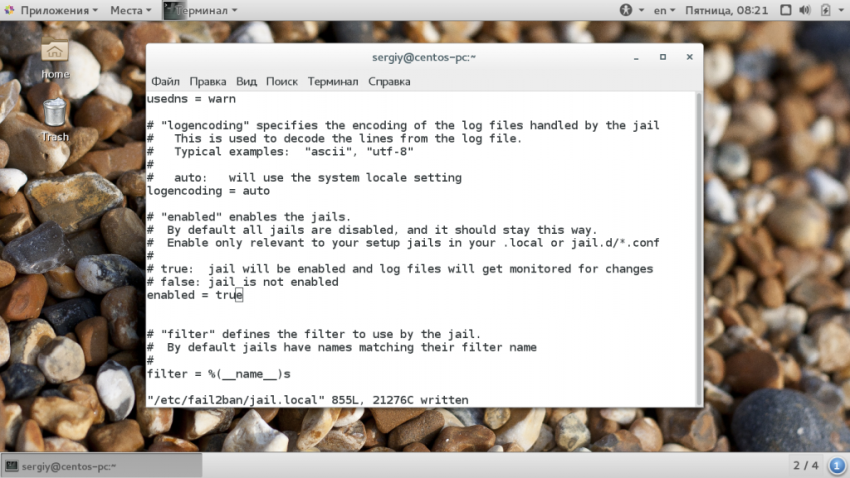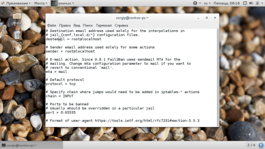 - fail2ban.conf — пример выполнения основных настроек программы;