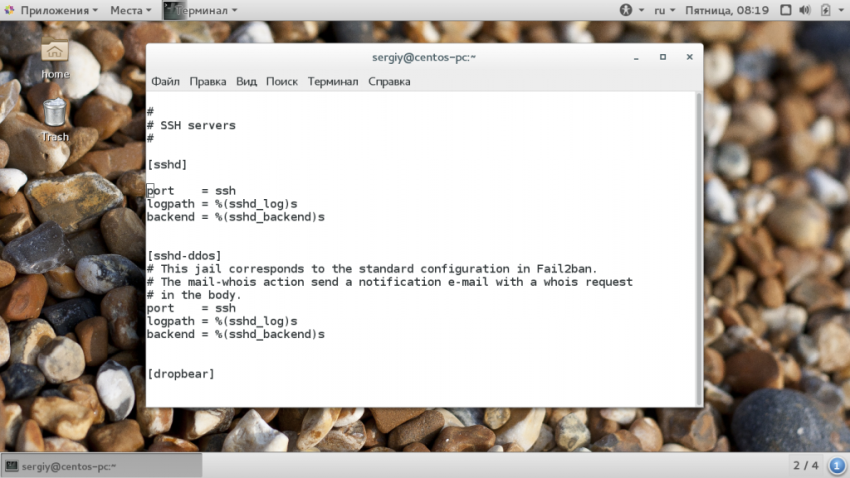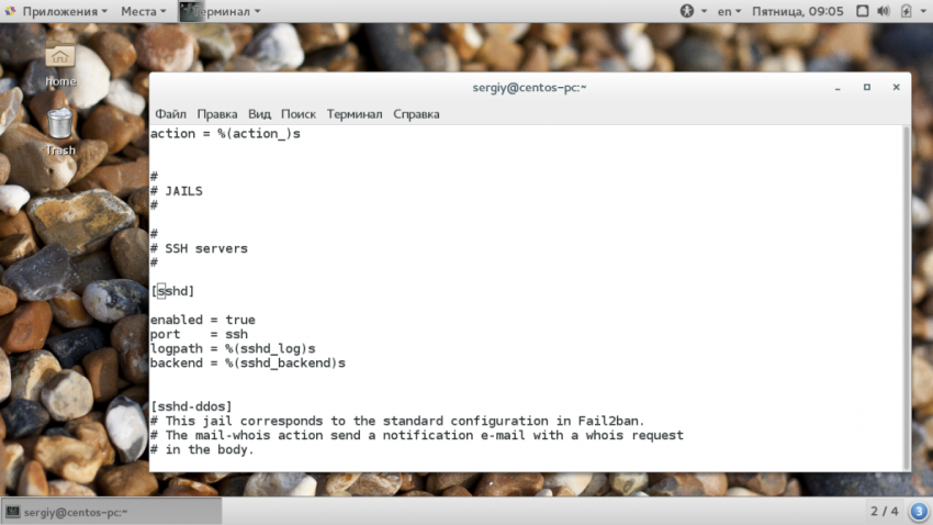 Например, для активации блокировки неверных входов SSH, приведите секцию [sshd] к такому виду: