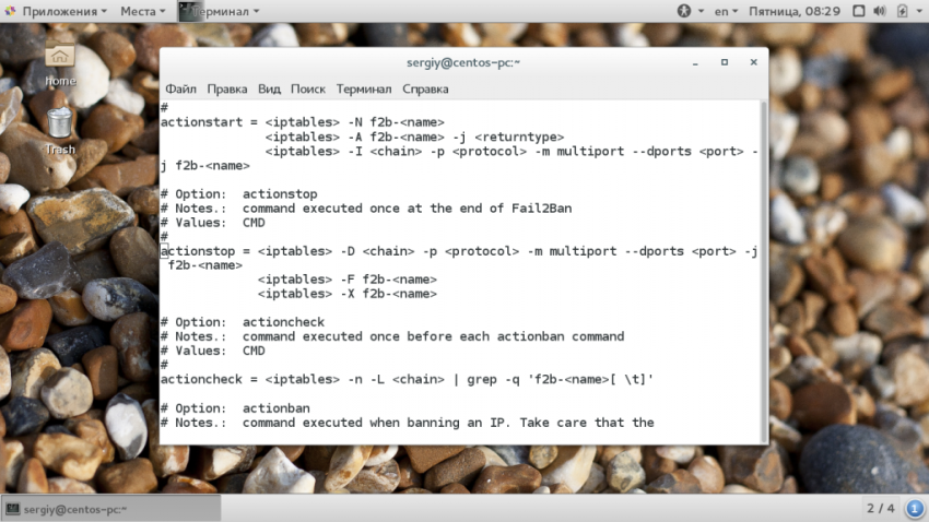 Обычно, никаких дополнительных настроек для iptables не требуется. Но давайте рассмотрим конфигурационный файл, который отвечает за блокировку, чтобы вы понимали как все работает. Имя этого файла указано в параметре banaction. По умолчанию это iptables-multiport.conf:
