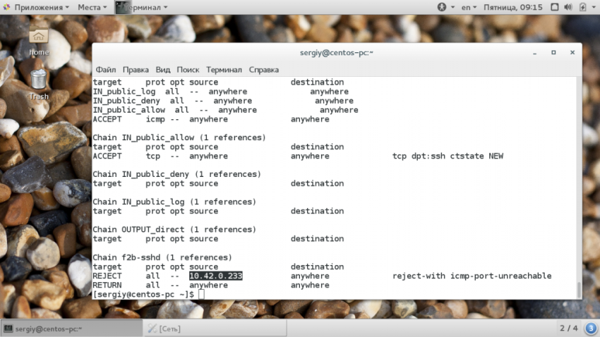 В самом низу, в нашей цепочке вы можете увидеть список забаненых ip fail2ban. Чтобы разбанить любой ip адрес достаточно удалить для него правило.