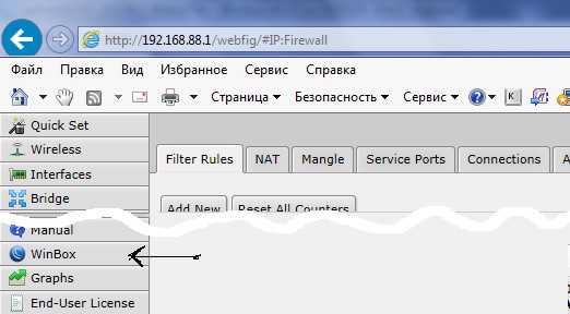Огромное преимущество WinBox состоит в том, что даже если сетевой адаптер компьютера, с которого вы подключаетесь к Mikrotik, находится в другой подсети (ну, настройка у вас такая), то WinBox все равно сможет подключиться к роутеру — по mac. Если вы еще не установили WinBox, самое время это сделать! В браузере открываем веб-интерфейс роутера и находим почти в самом низу ссылочку WinBox.