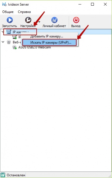 Откройте уже знакомые настройки приложения iVideon и дайте команду «IP-камеры — Искать IP-камеры uPnP».