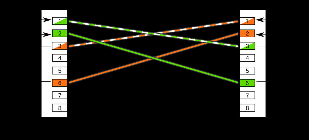 Подключение Cross-Ethernet (отличие от стандартного по двум из 4-х пар)