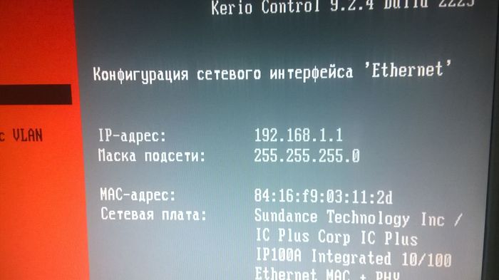Включаем ПК на котором установлен Kerio Control. В нашем случае настройки уже были выполнены. Если настройки не выполнены, читаем первую часть описания. Если кратко в настройках Kerio нужно указать IP адрес внутренней сетевой карты в пункте «Конфигурация сети». У нас это 192.168.1.1. Маска подсети: 255.255.255.0.